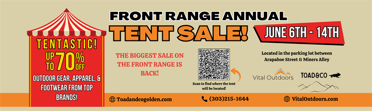 Front Range Annual Tent Sale at Vital Outdoors – June 6–14, Golden, CO