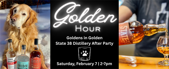 After a morning celebrating Goldens in Golden, continue the fun at Golden Hour: Goldens in Golden Distillery After Party at State 38 Distilling on Saturday, February 7 from 2–7 PM.