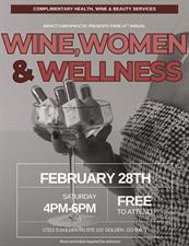 Come join us for our Wine Women and Wellness event hosted by Impact Chiropractic. We feature all locally owned, (mostly) women owned businesses to pamper you for an evening. Try out 10+ complimentary vendor services from flash tattoos, chair massage, facial massage, chiropractic analysis, SoftWave therapy, nail polish change, to vitamin injections, and more!